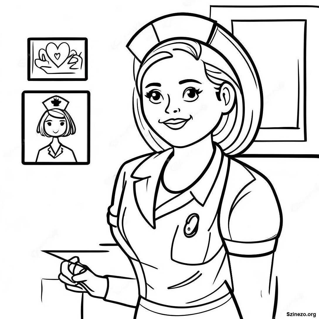 Töltse le a nyomtatható PDF verzióját a(z) Ápolónő Orvosi Ruhában Színezőoldala oldalnak