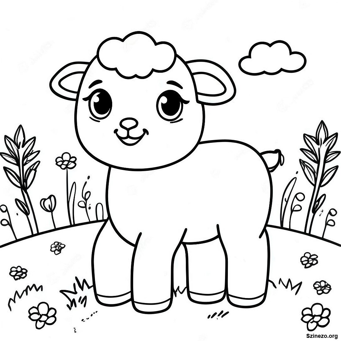Töltse le a nyomtatható PDF verzióját a(z) Aranyos Bárány A Réten Színező Oldal oldalnak