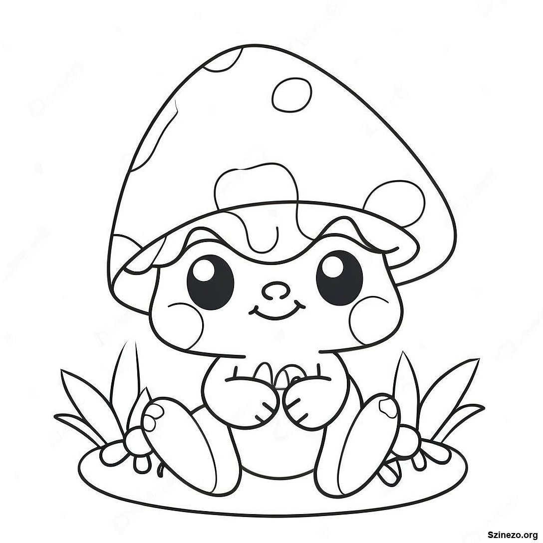 Aranyos Gomba Törpe Virágokkal Színezőlap