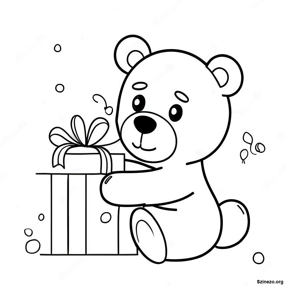 Aranyos Karácsonyi Ajándék Mackóval Színezőlap