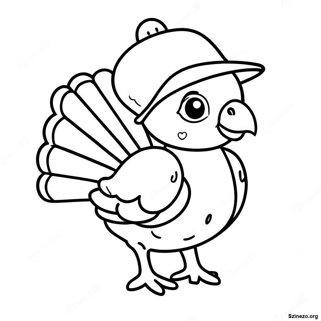 Töltse le a nyomtatható PDF verzióját a(z) Baba Pulyka Kalappal Színezőoldal oldalnak