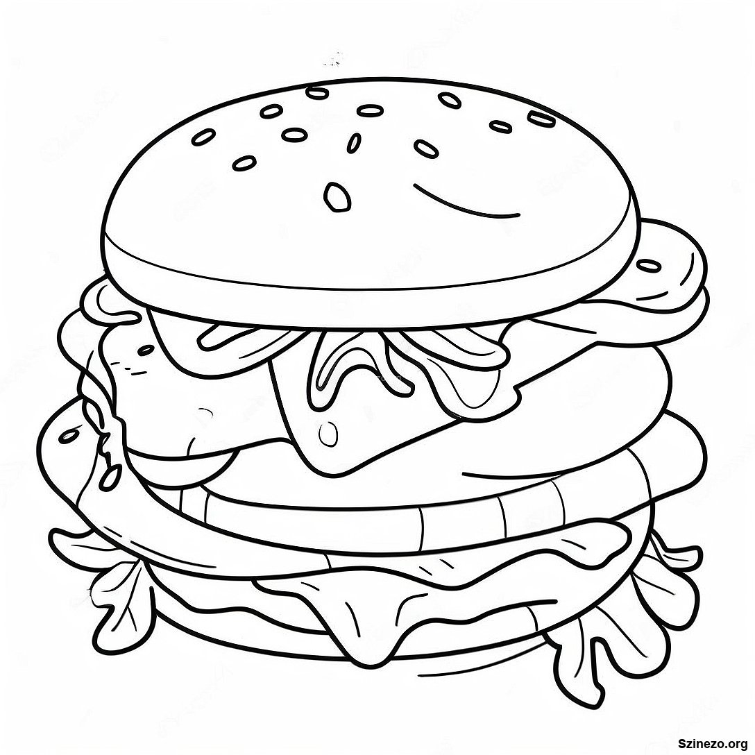 Töltse le a nyomtatható PDF verzióját a(z) Baconos Sajtos Hamburger Színezőlap oldalnak