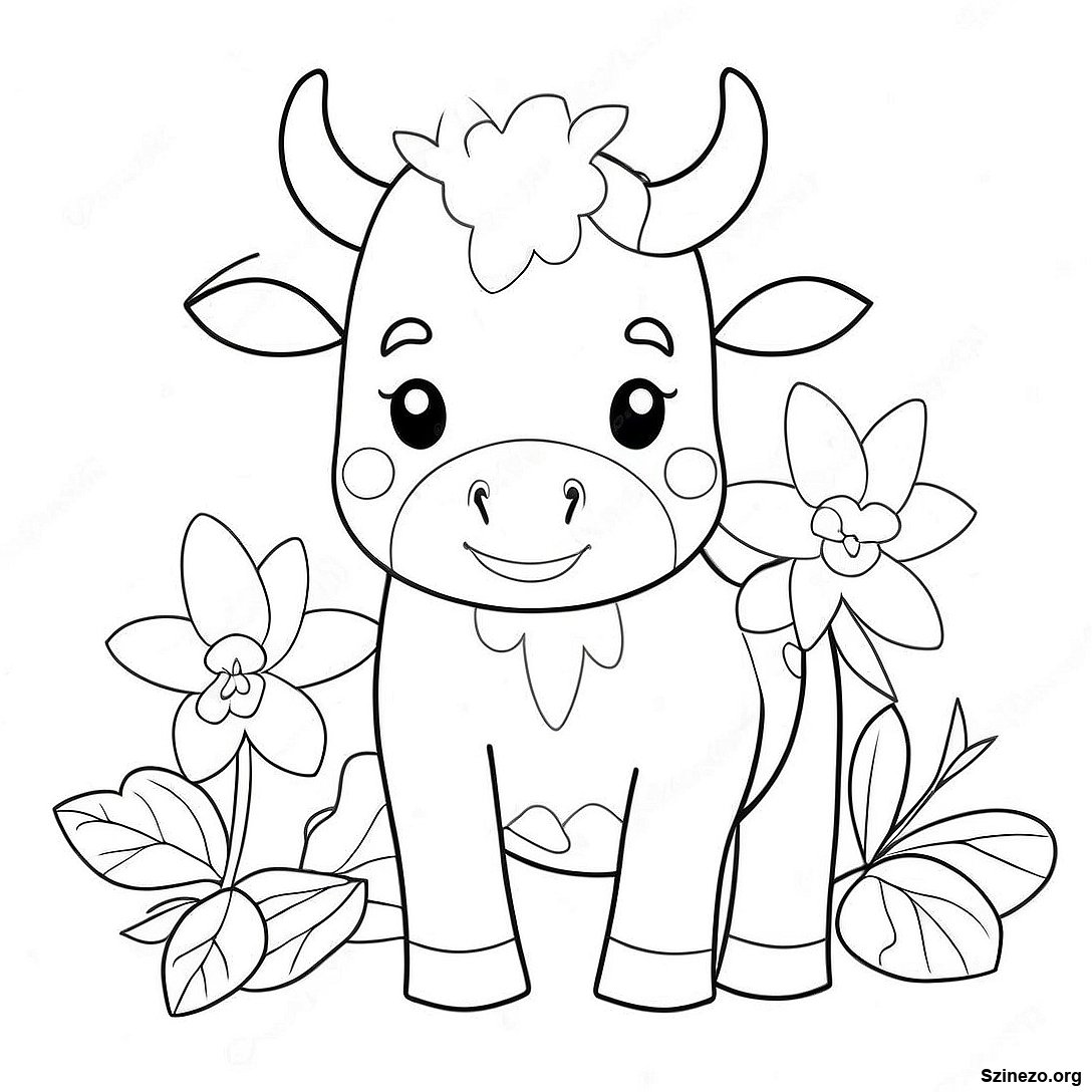 Bajos Eper Tehen Viragokkal Szinezolap