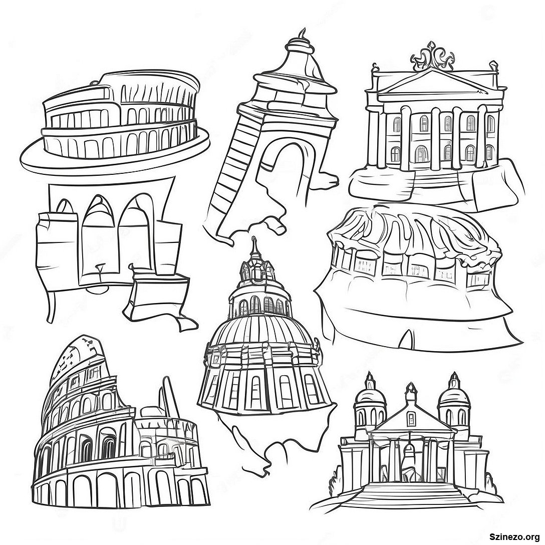 Töltse le a nyomtatható PDF verzióját a(z) Bájos Európai Nevezetességek Színezőlap oldalnak