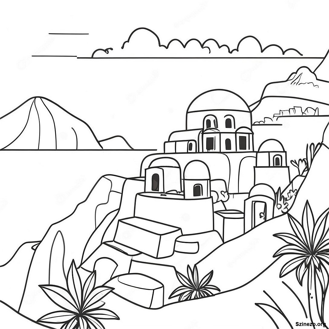 Töltse le a nyomtatható PDF verzióját a(z) Bájos Görög Táj Színezőlap oldalnak