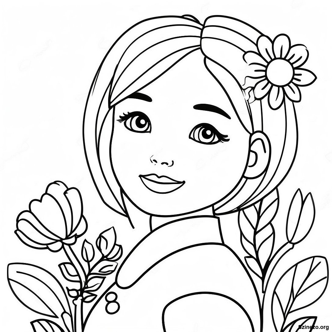 Töltse le a nyomtatható PDF verzióját a(z) Bájos Lány Virágokkal Színezőlap oldalnak
