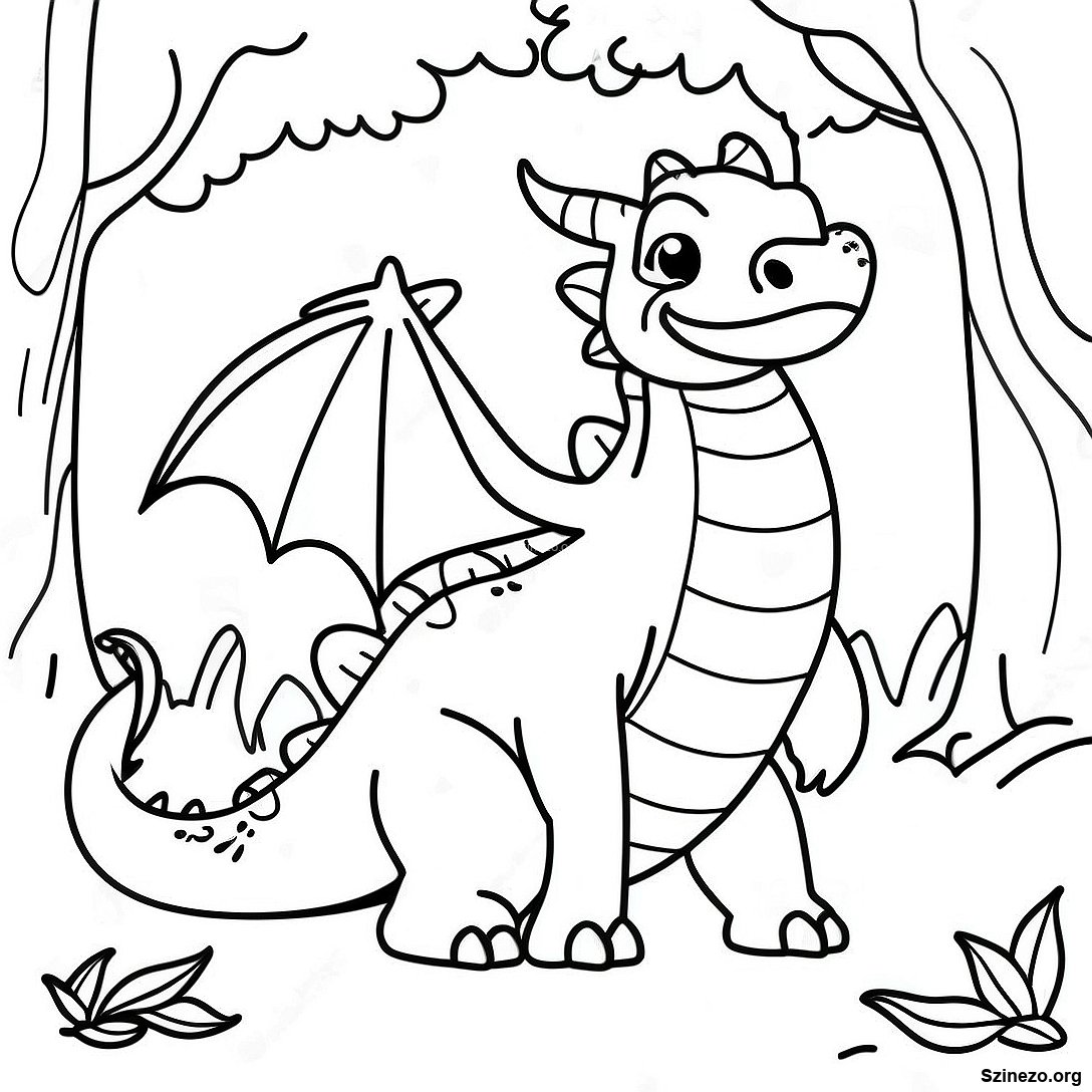 Töltse le a nyomtatható PDF verzióját a(z) Bájos Sárkány Az Erdőben Színezőlap oldalnak