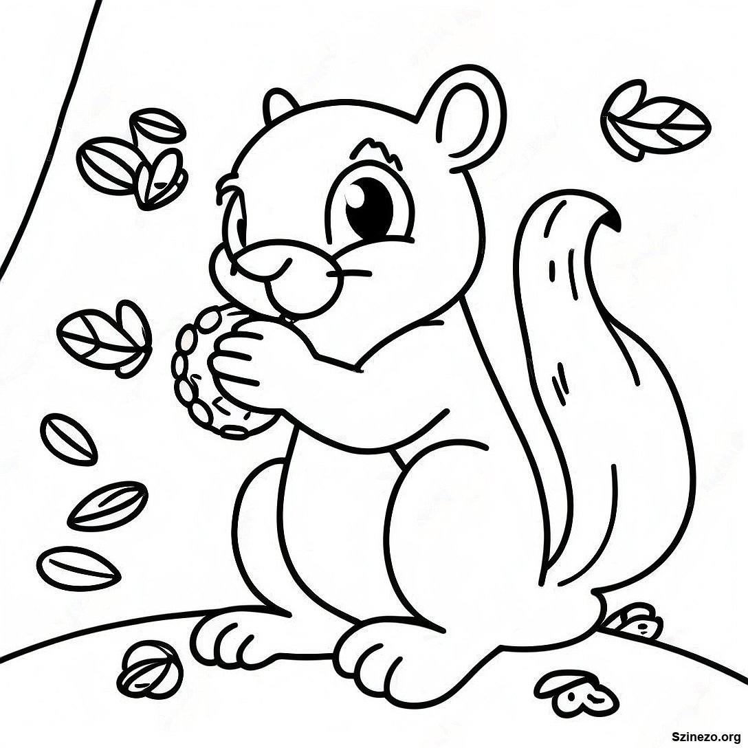Barátságos Mókus Makkot Gyűjt Színezőlap