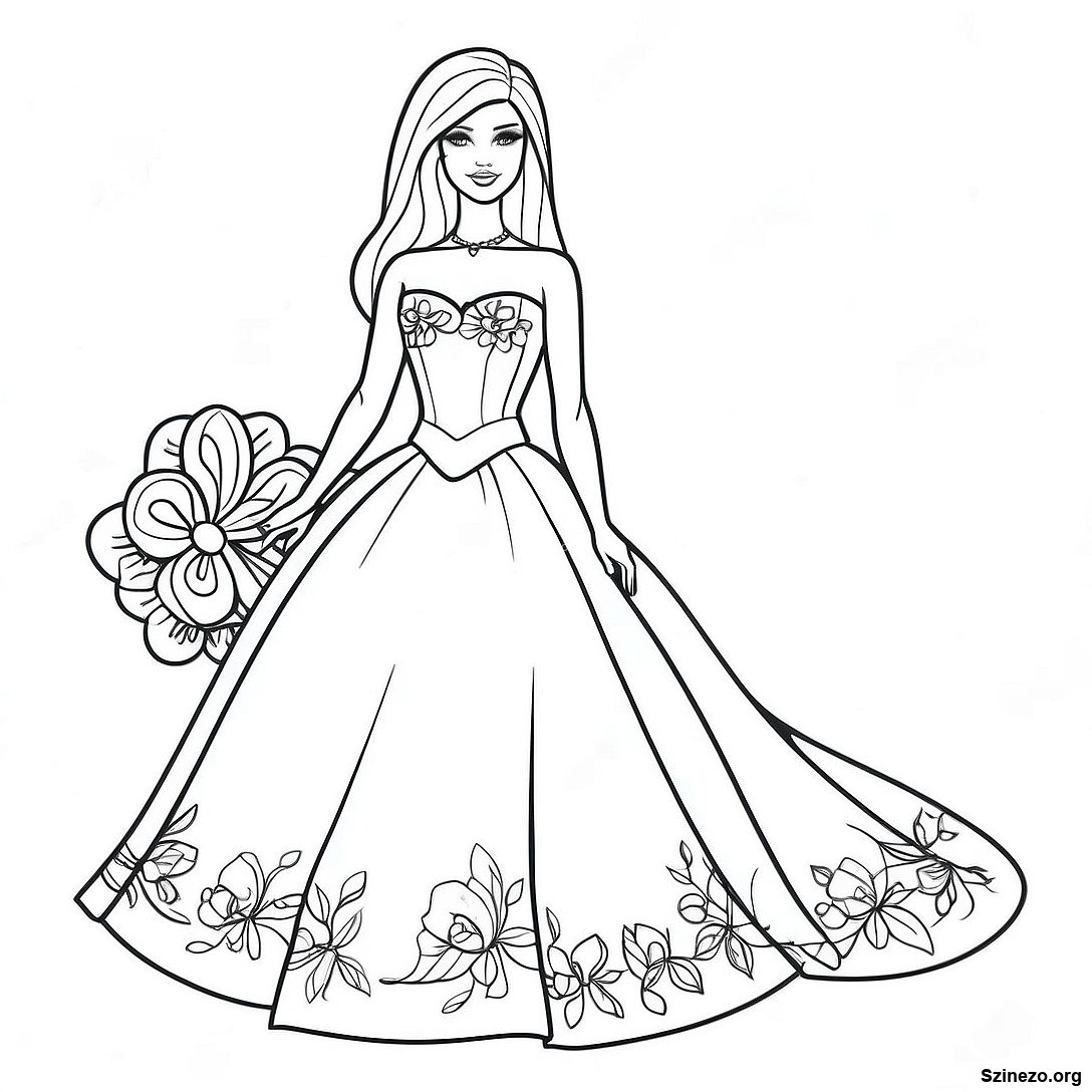 Barbie Gyönyörű Esküvői Ruhában Színezőlap