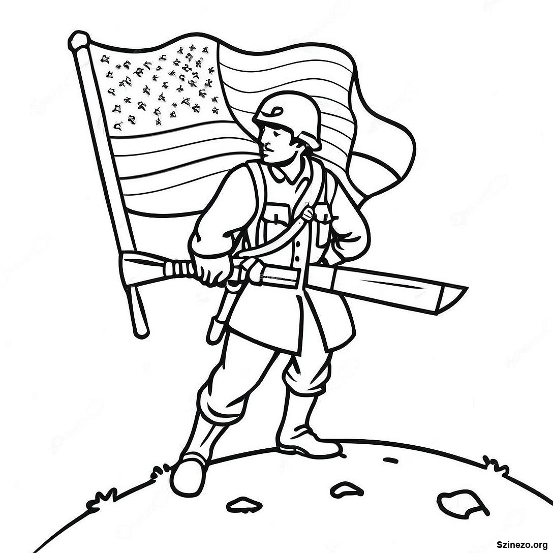 Töltse le a nyomtatható PDF verzióját a(z) Bátor Katona Zászlóval Színezőoldal oldalnak