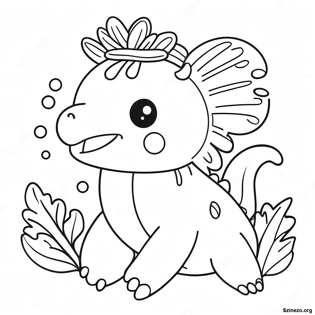 Boldog Axolotl Viragkoszoruval Szinezolap