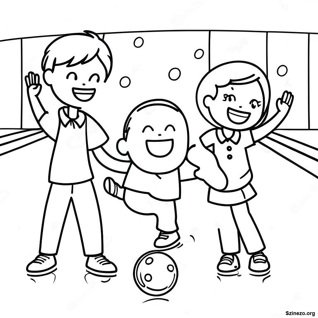 Boldog Gyerekek Bowlingoznak Szinezo Oldal