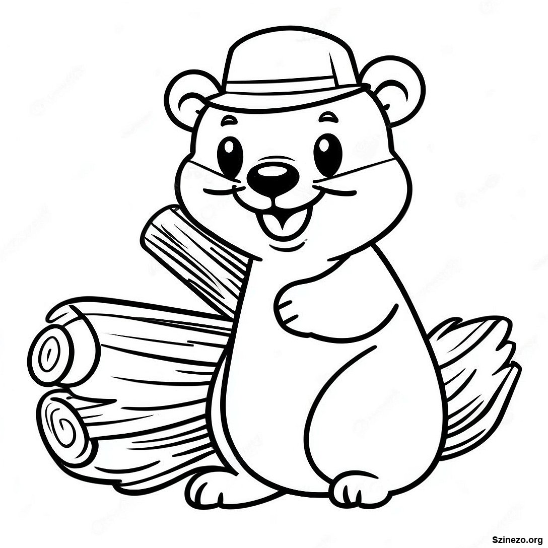Boldog Hód Egy Farönköt Tart Színezőlap