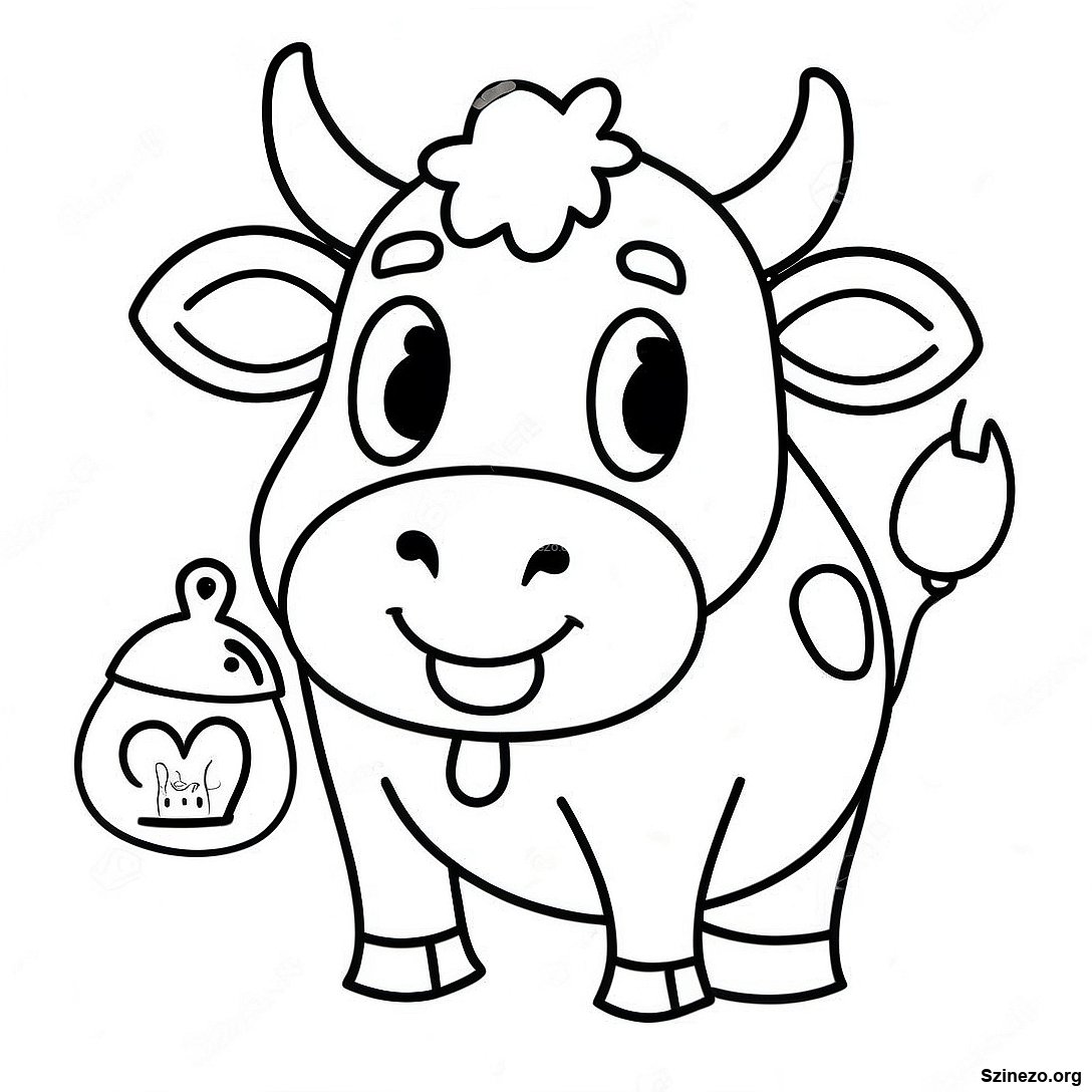 Töltse le a nyomtatható PDF verzióját a(z) Boldog Tehén Haranggal Színezhető Lap oldalnak
