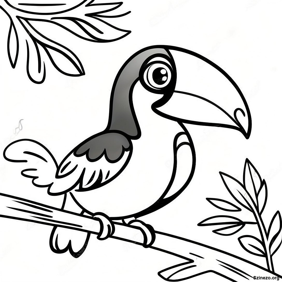 Töltse le a nyomtatható PDF verzióját a(z) Boldog Tukan Ágon Ülve Színező Oldal oldalnak