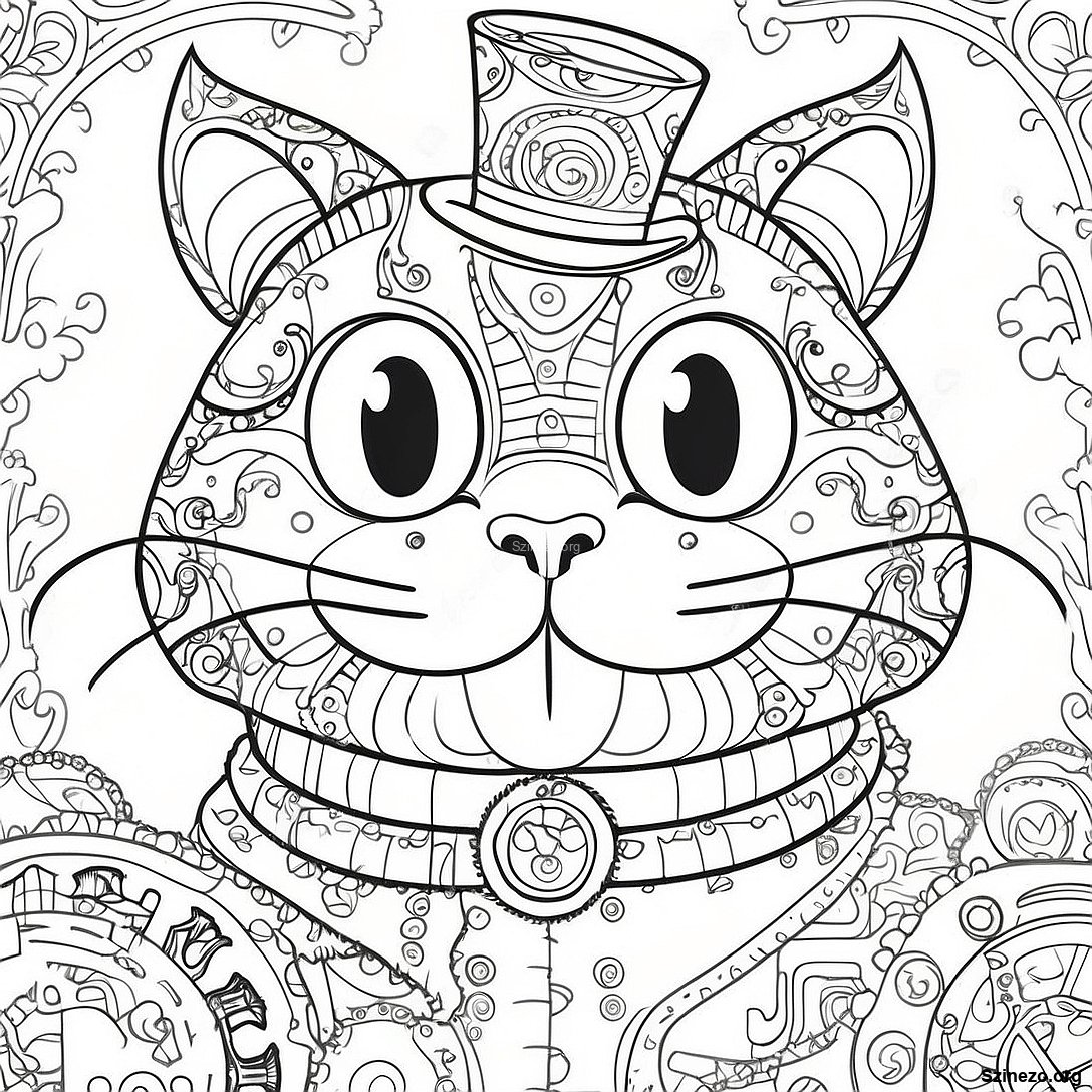 Töltse le a nyomtatható PDF verzióját a(z) Bonyolult Steampunk Csecsen Macska Színező oldalnak
