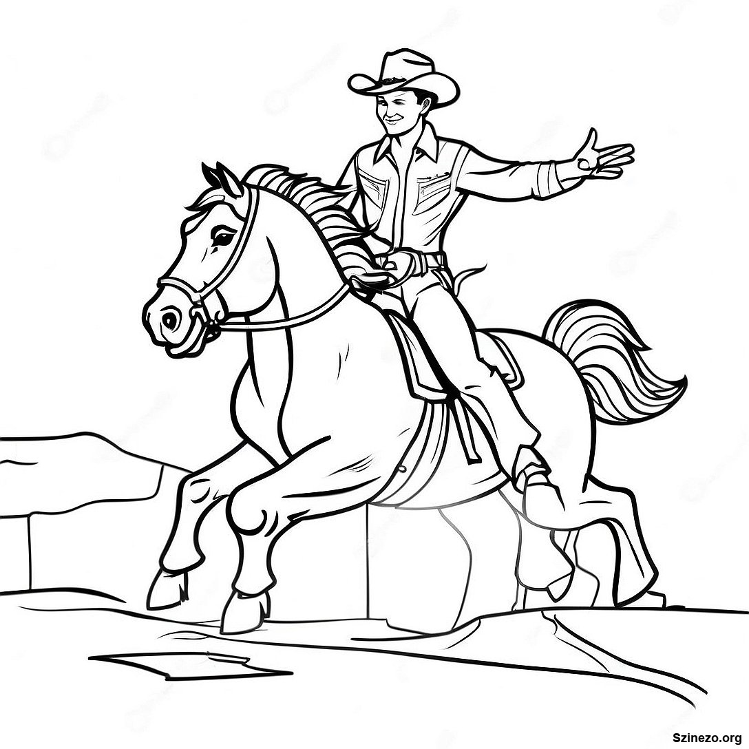 Töltse le a nyomtatható PDF verzióját a(z) Bronco Cowboy Lovassal Színezőlap oldalnak