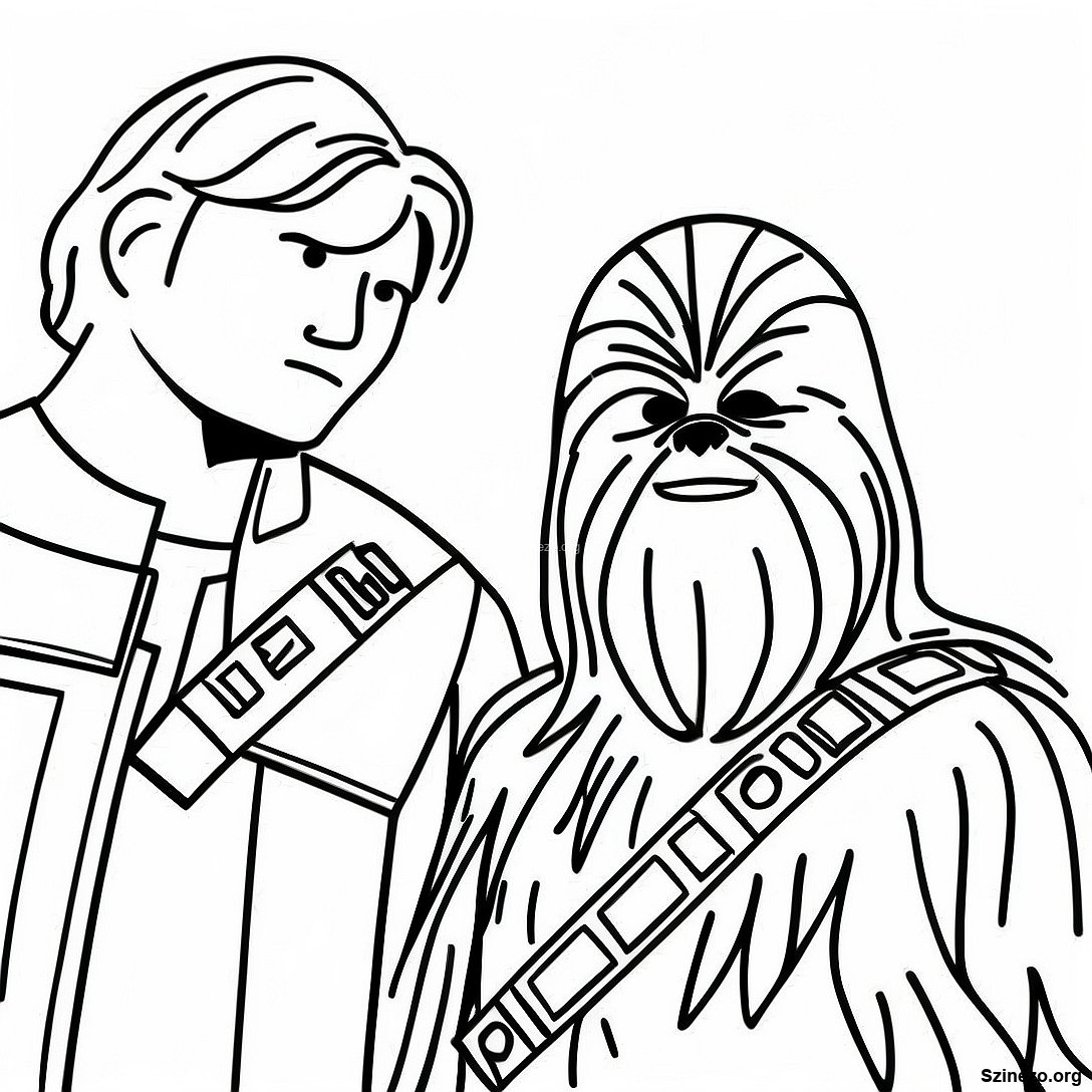 Töltse le a nyomtatható PDF verzióját a(z) Chewbacca Han Solóval Színezőlap oldalnak