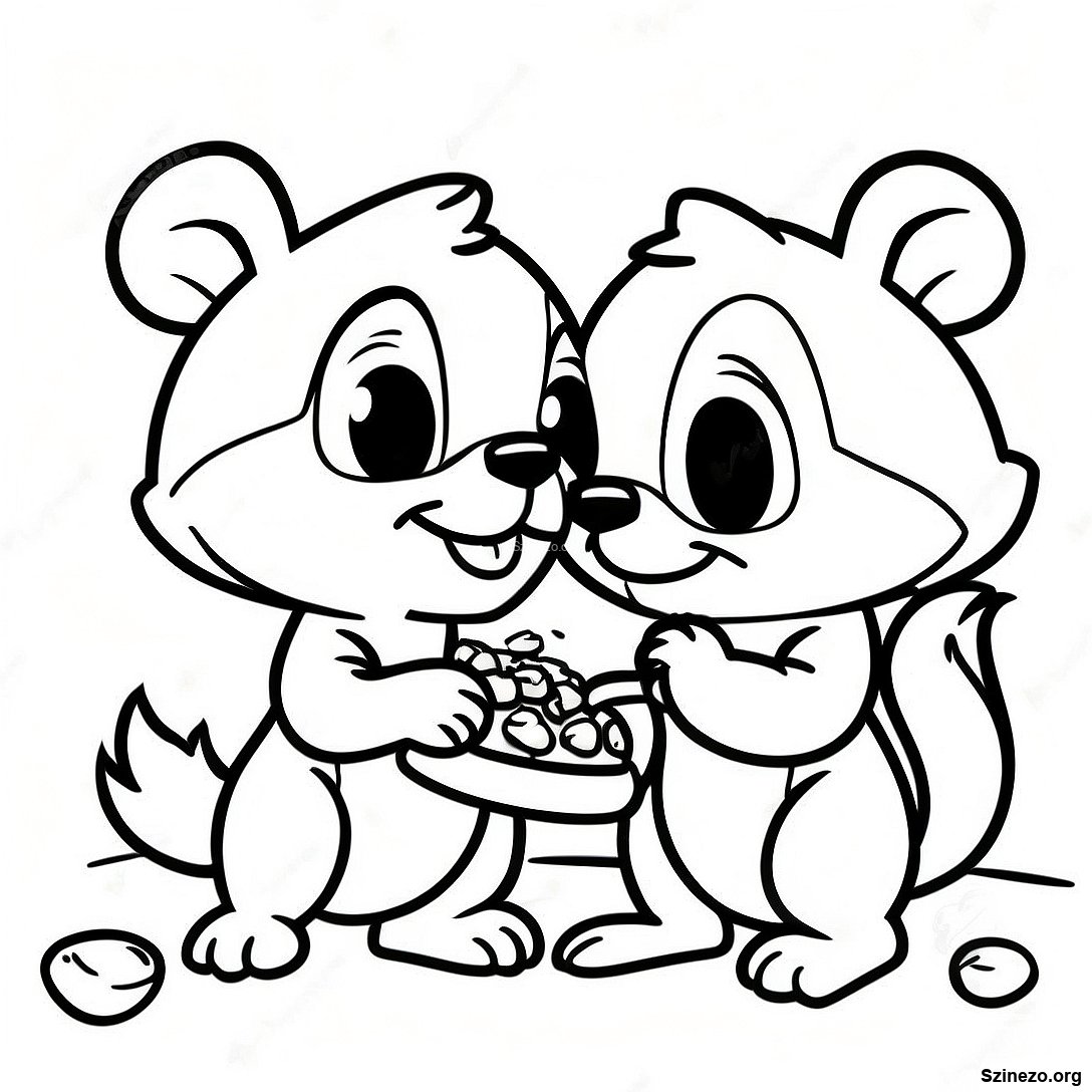 Töltse le a nyomtatható PDF verzióját a(z) Chip És Dale Diót Eszik Színezőlap oldalnak