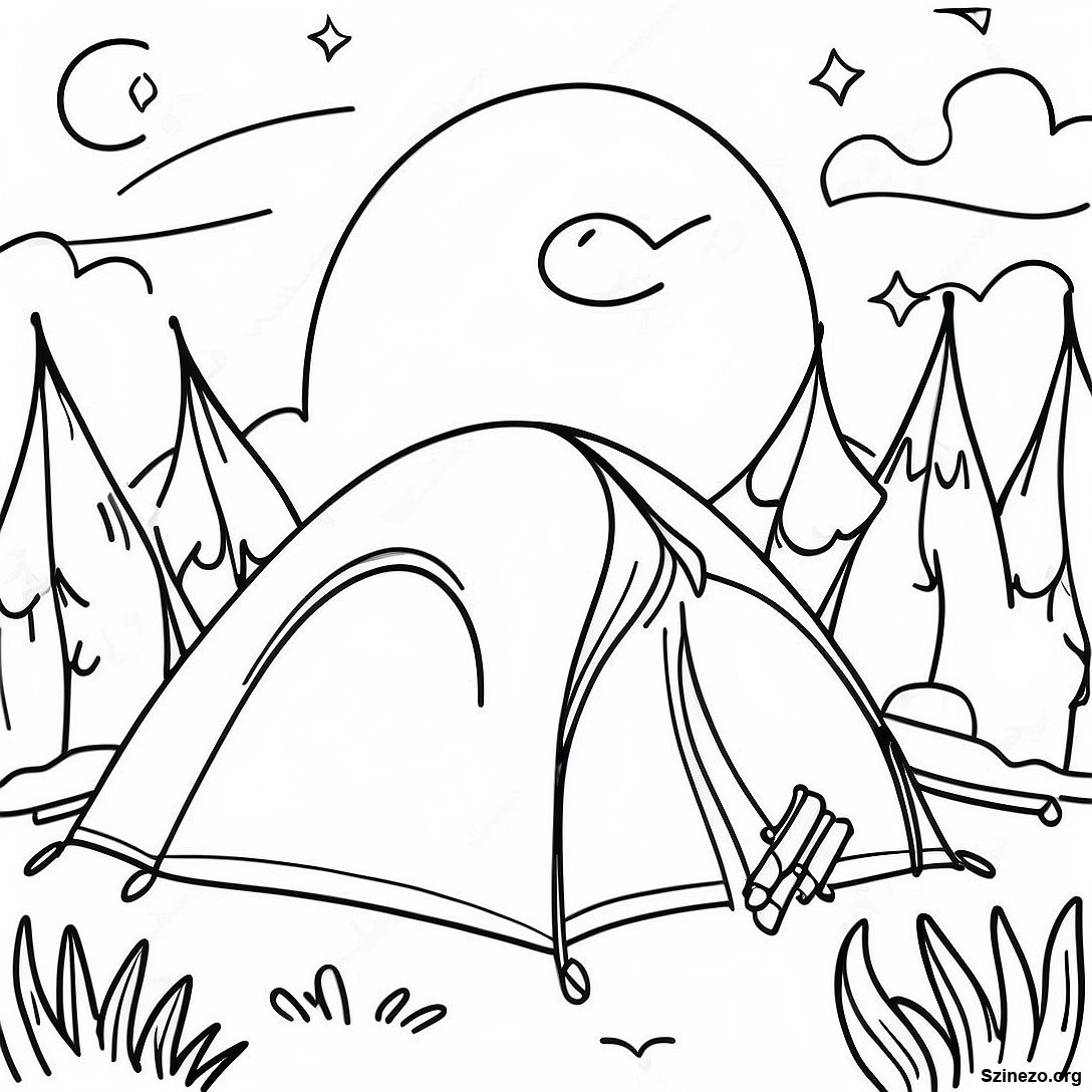 Csillagos Éjszakai Kemping Színezőlap