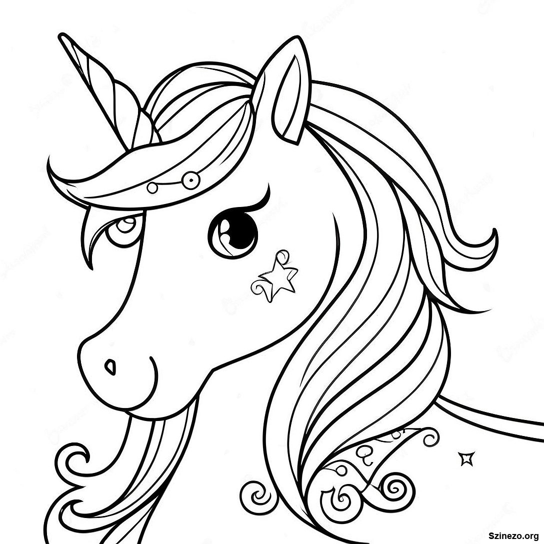 Aranyos Alicorn Csillogó Sörénnyel Színezőlap