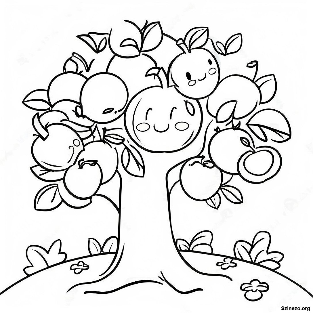Cuki Almafa Mosolygó Almákkal Színezőlap