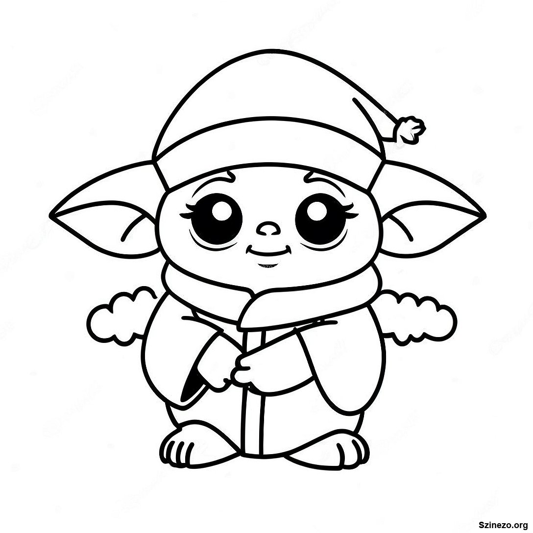 Cuki Baby Yoda Mikulás Sapkában Színezőlap