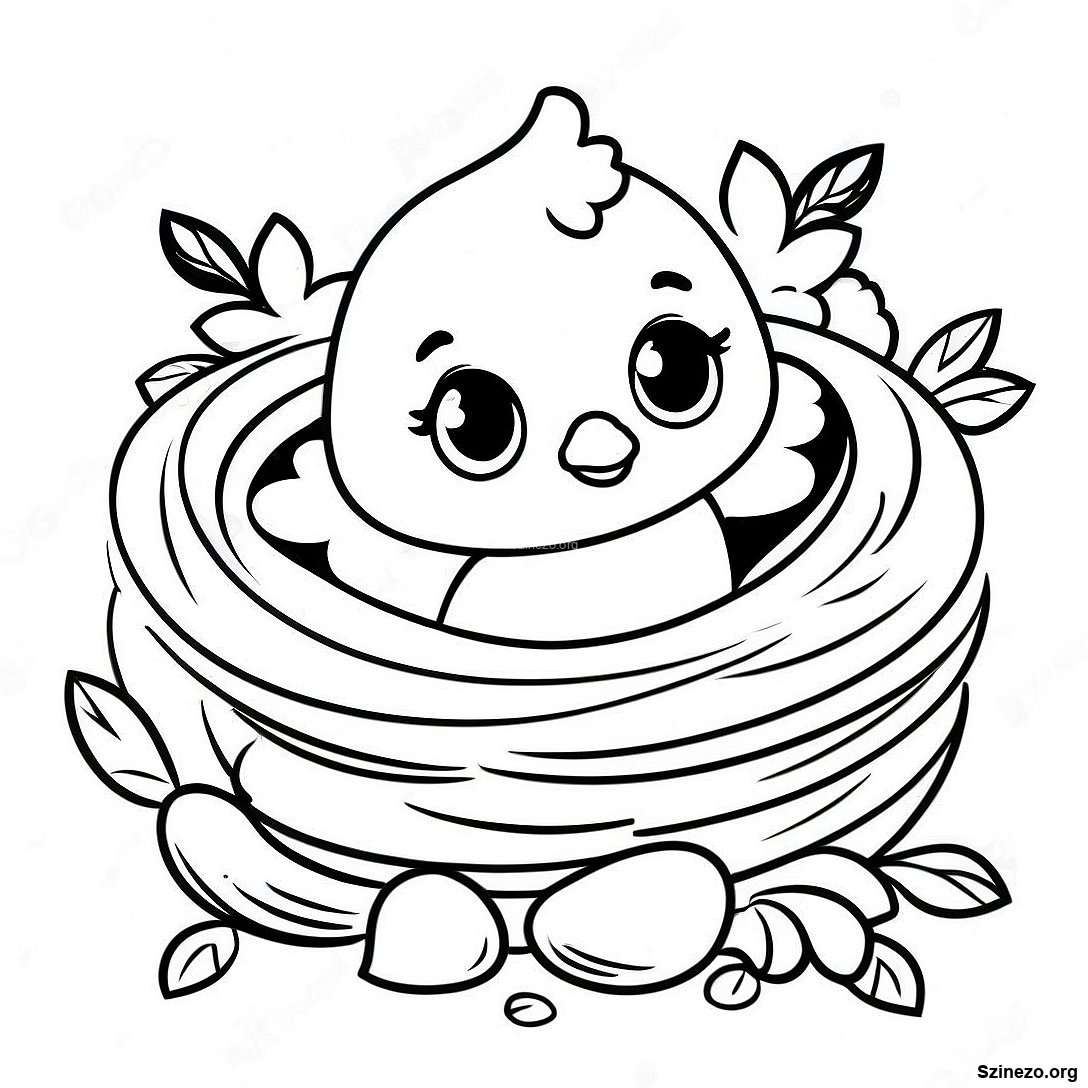 Töltse le a nyomtatható PDF verzióját a(z) Cuki Bébi Csibe Fészekben Színezőlap oldalnak