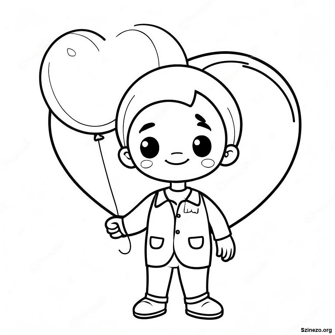Töltse le a nyomtatható PDF verzióját a(z) Cuki Fiú Szív Lufival Színezőlap oldalnak