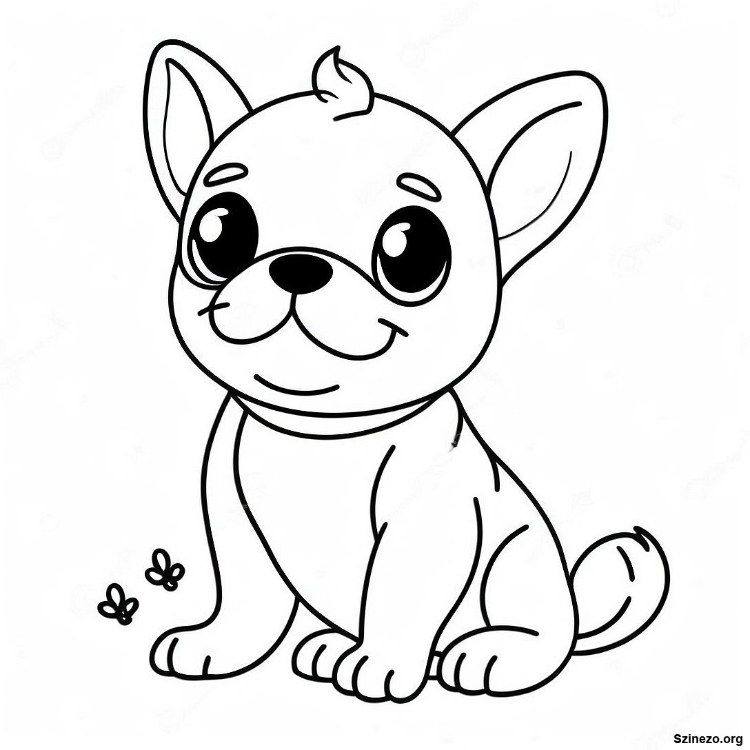 Töltse le a nyomtatható PDF verzióját a(z) Cuki Francia Bulldog Kölyök Színezőlap oldalnak