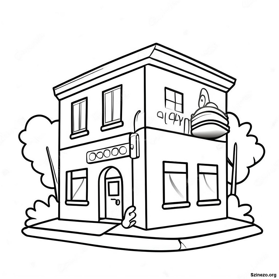 Töltse le a nyomtatható PDF verzióját a(z) Cuki Gyógyszertári Épület Színezőlap oldalnak