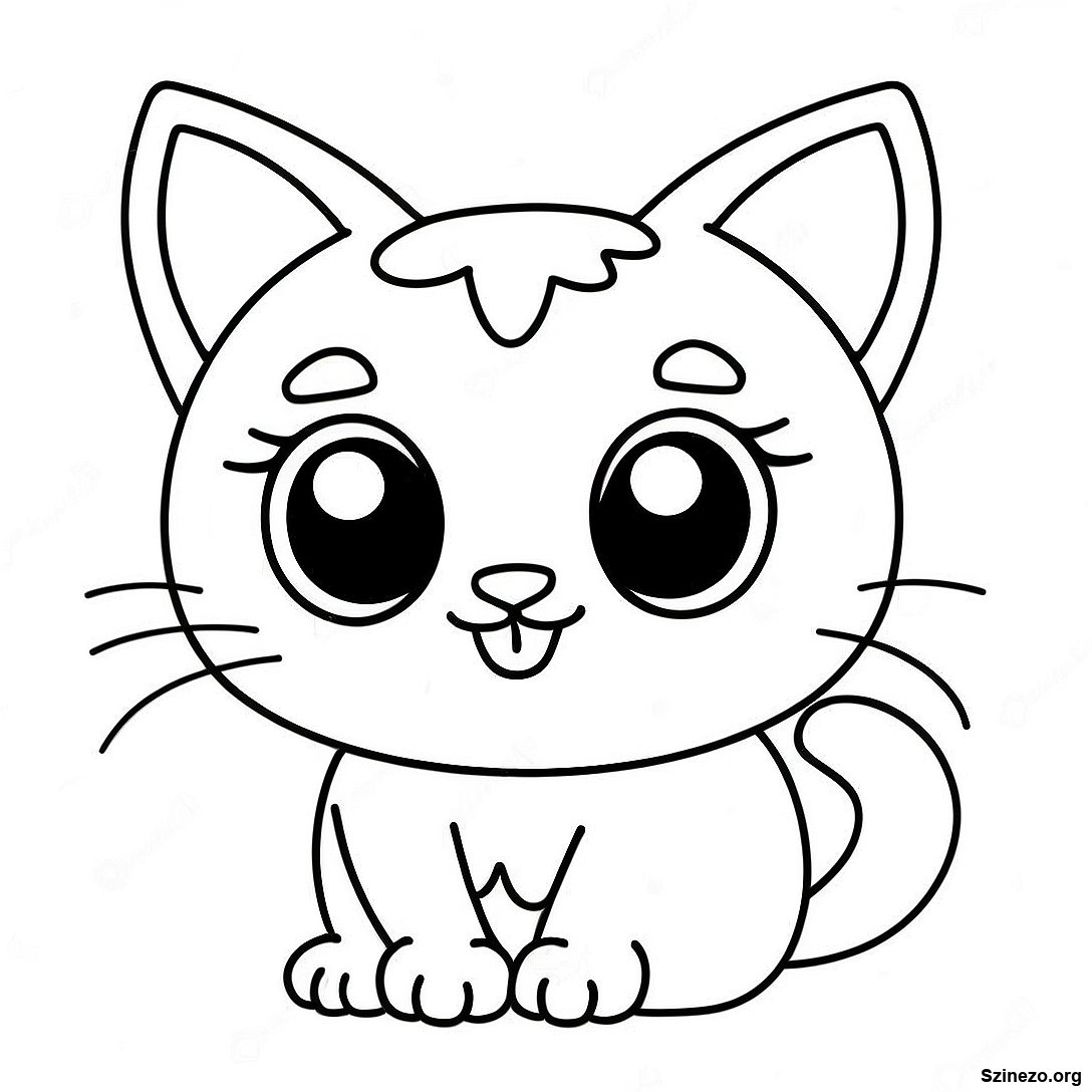 Cuki Kawaii Macska Nagy Szemekkel Színezőlap