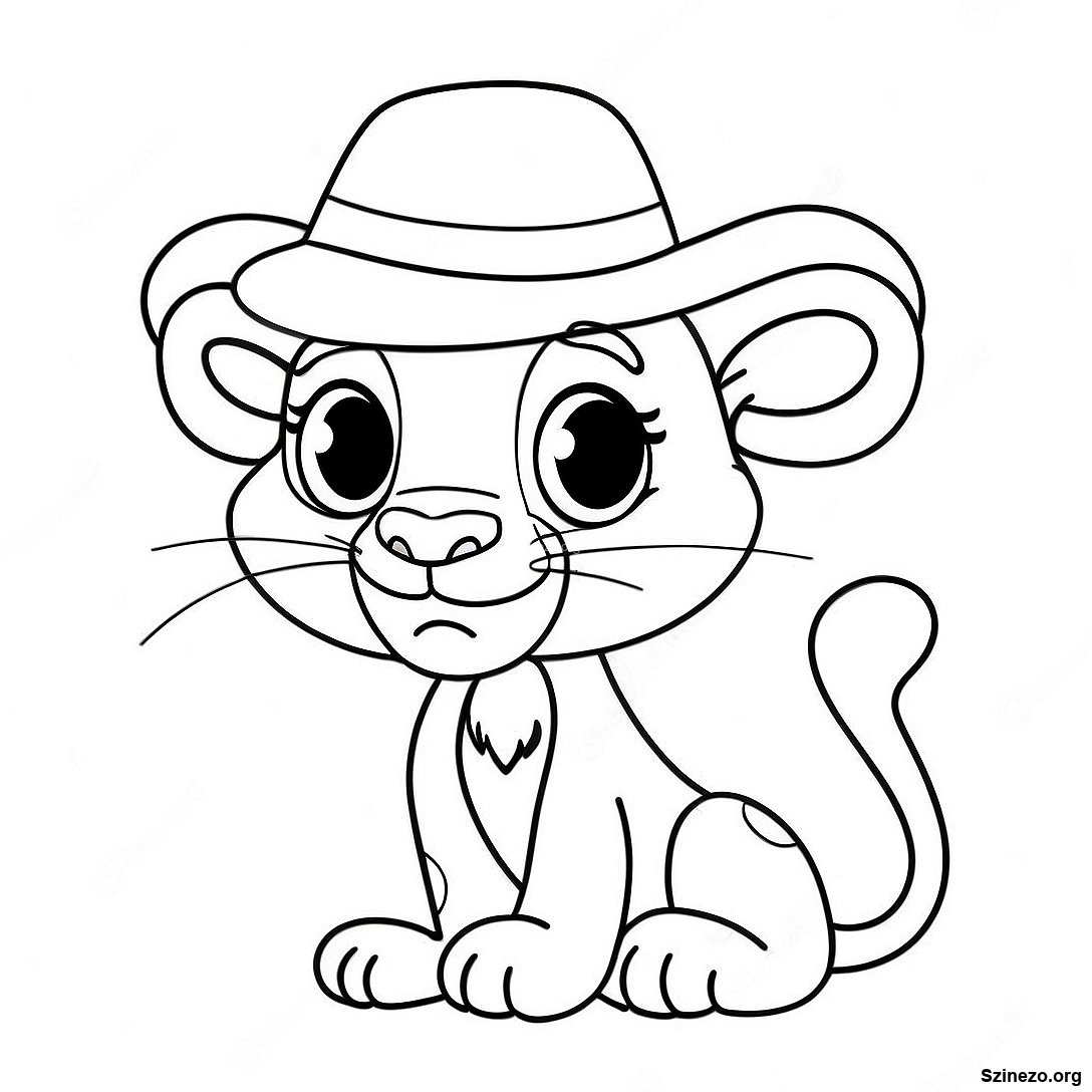 Cuki Rózsaszín Párduc Kalapban Színezőlap