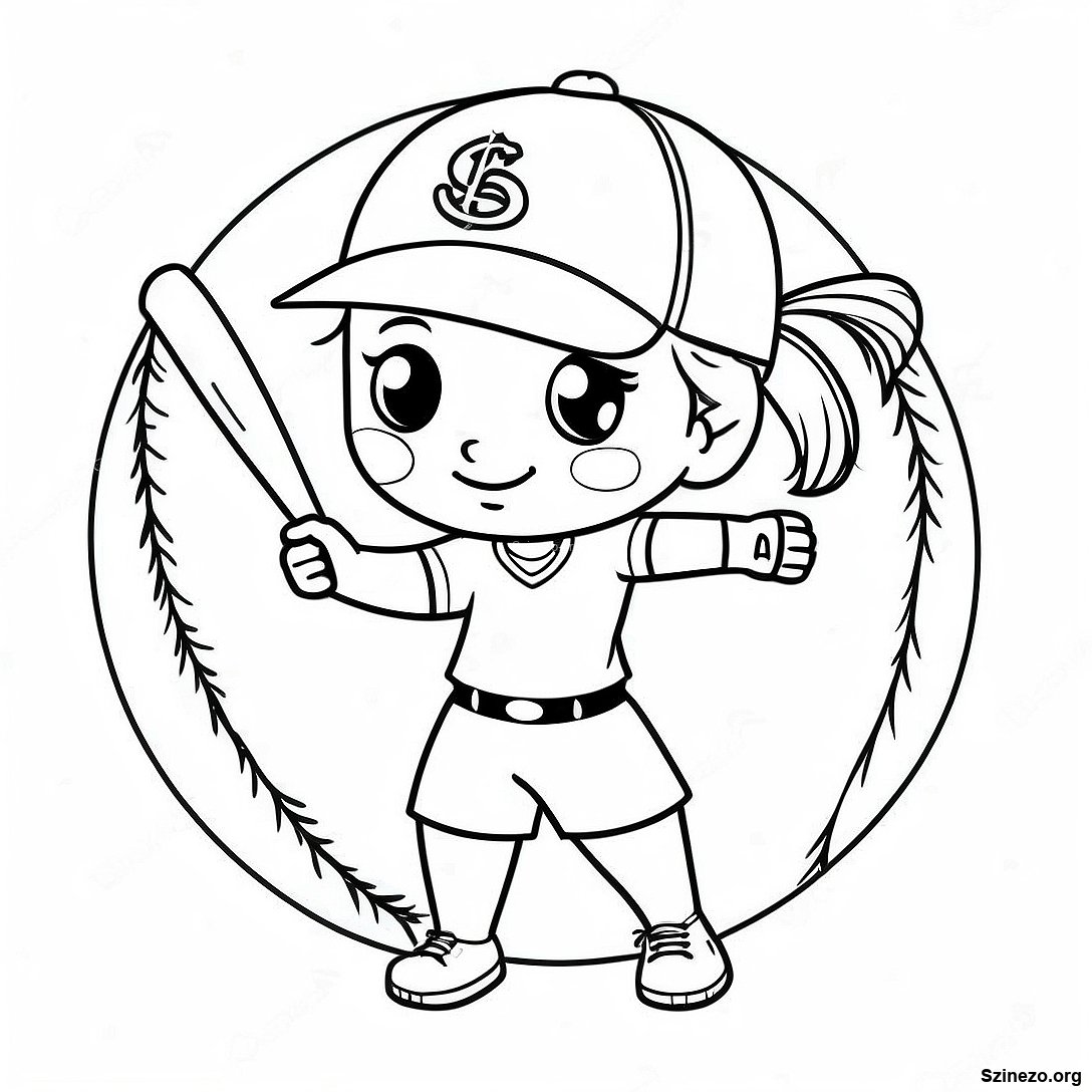 Töltse le a nyomtatható PDF verzióját a(z) Cuki Softball Színezőlap oldalnak