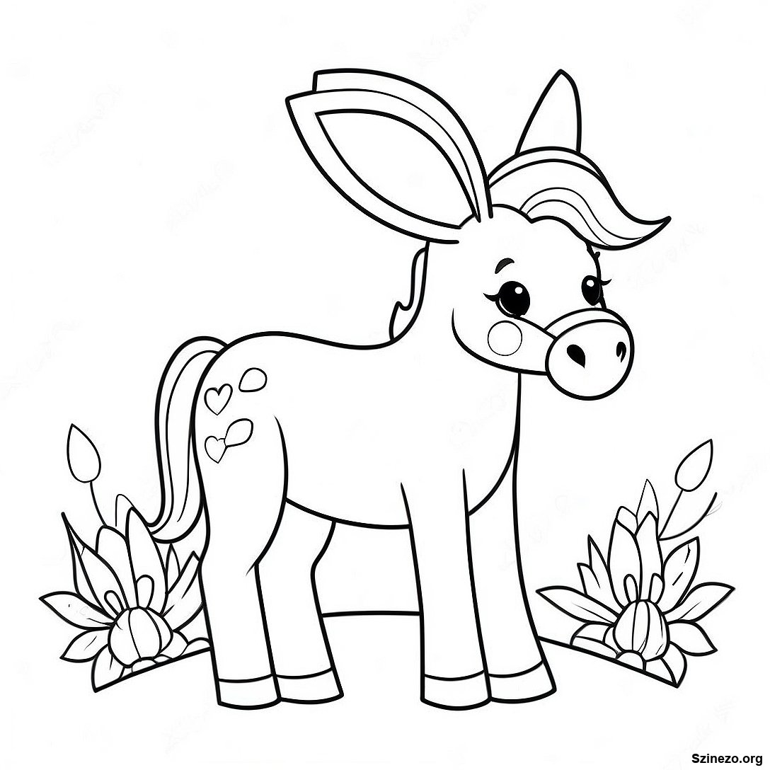 Töltse le a nyomtatható PDF verzióját a(z) Cuki Szamár Virágokkal Színezőlap oldalnak