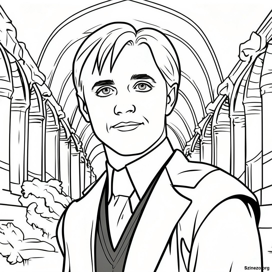 Töltse le a nyomtatható PDF verzióját a(z) Draco Malfoy A Roxfortban Színezőoldal oldalnak