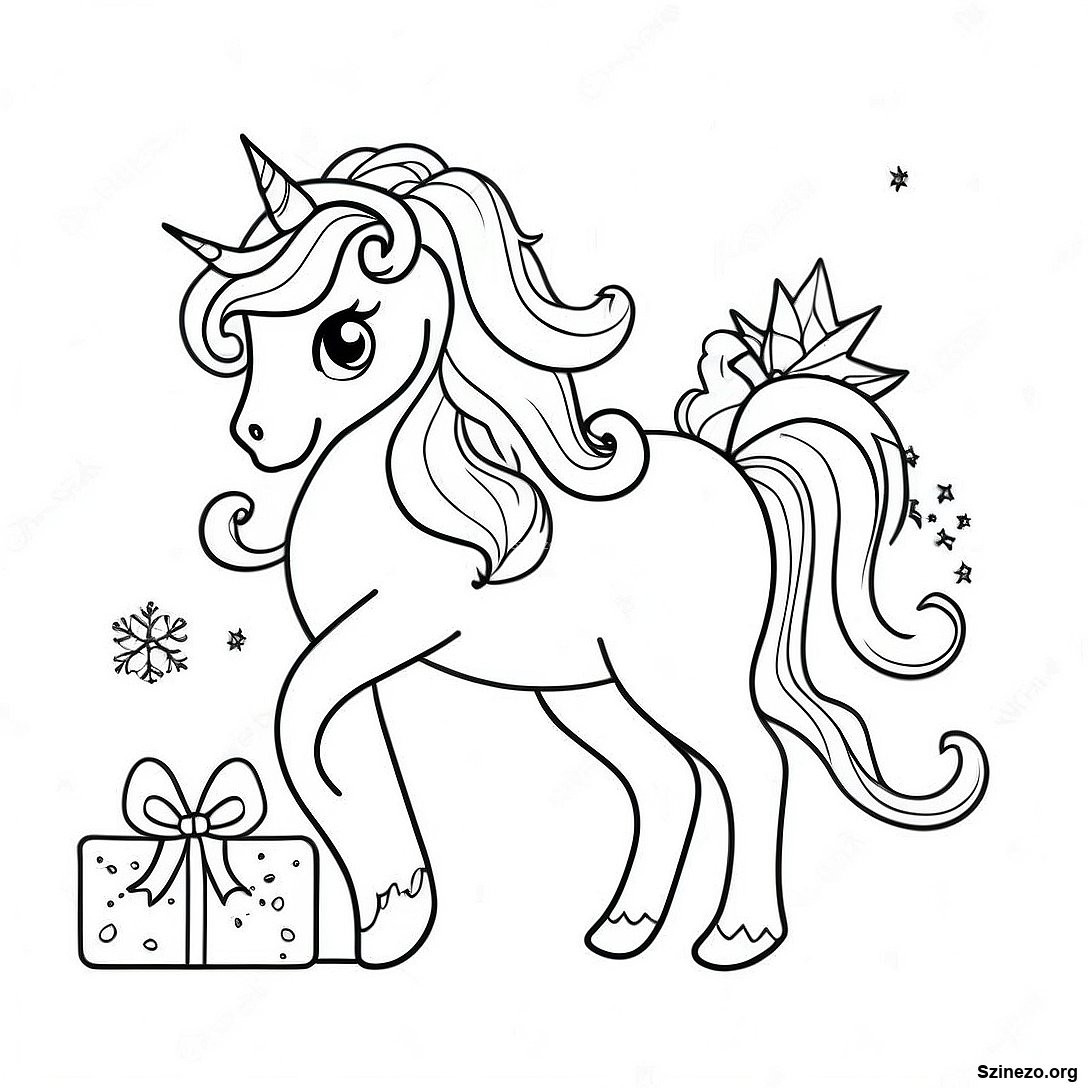 Töltse le a nyomtatható PDF verzióját a(z) Egyszarvú Karácsonyi Színezőlap oldalnak