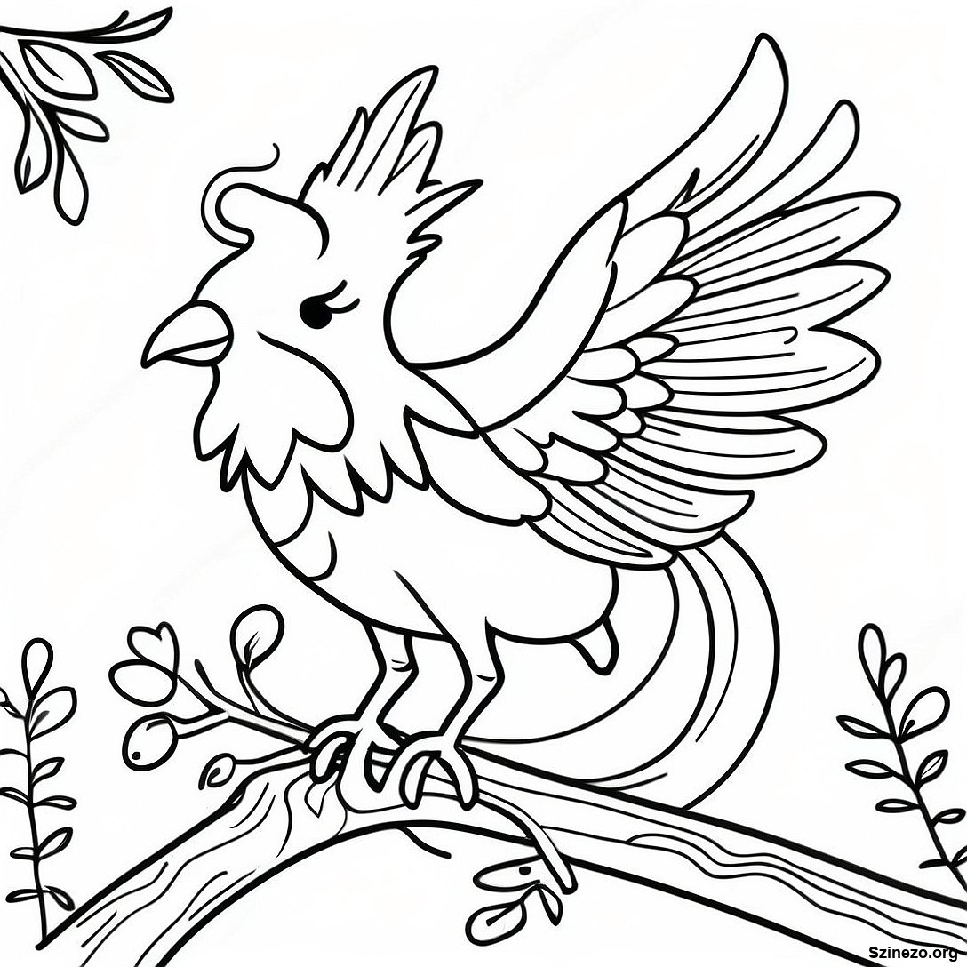 Töltse le a nyomtatható PDF verzióját a(z) Elegáns Főnix Ágon Ülve Kifestőlap oldalnak