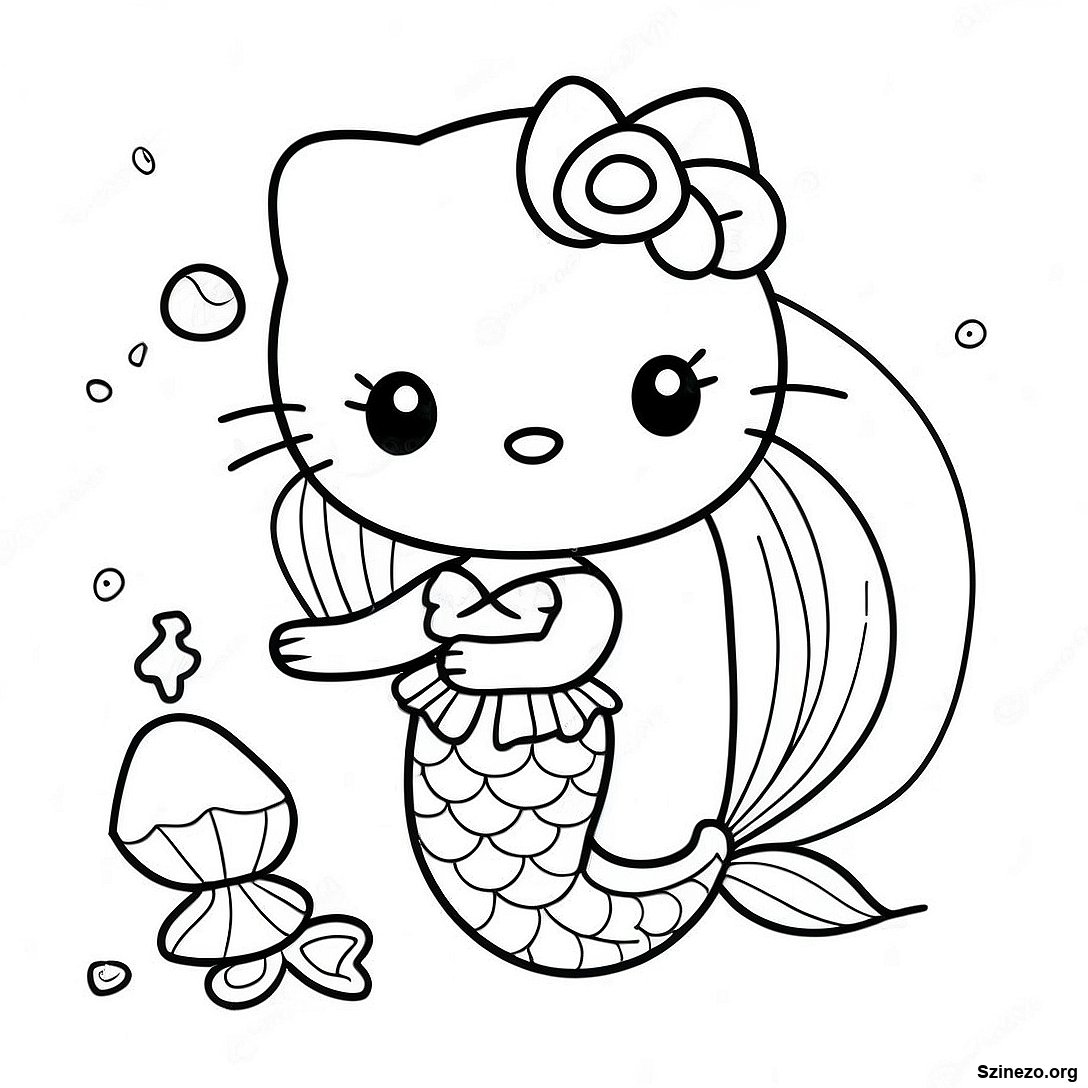 Elegáns Hello Kitty Sellő Kagylókkal Színezőoldal
