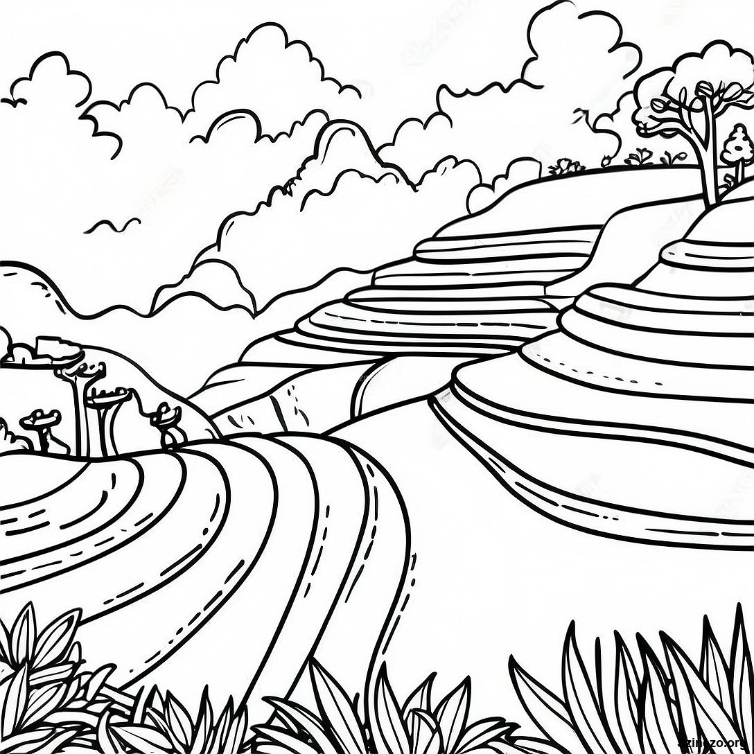 Töltse le a nyomtatható PDF verzióját a(z) Élénk Banaue Rizsteraszok Színezőlap oldalnak