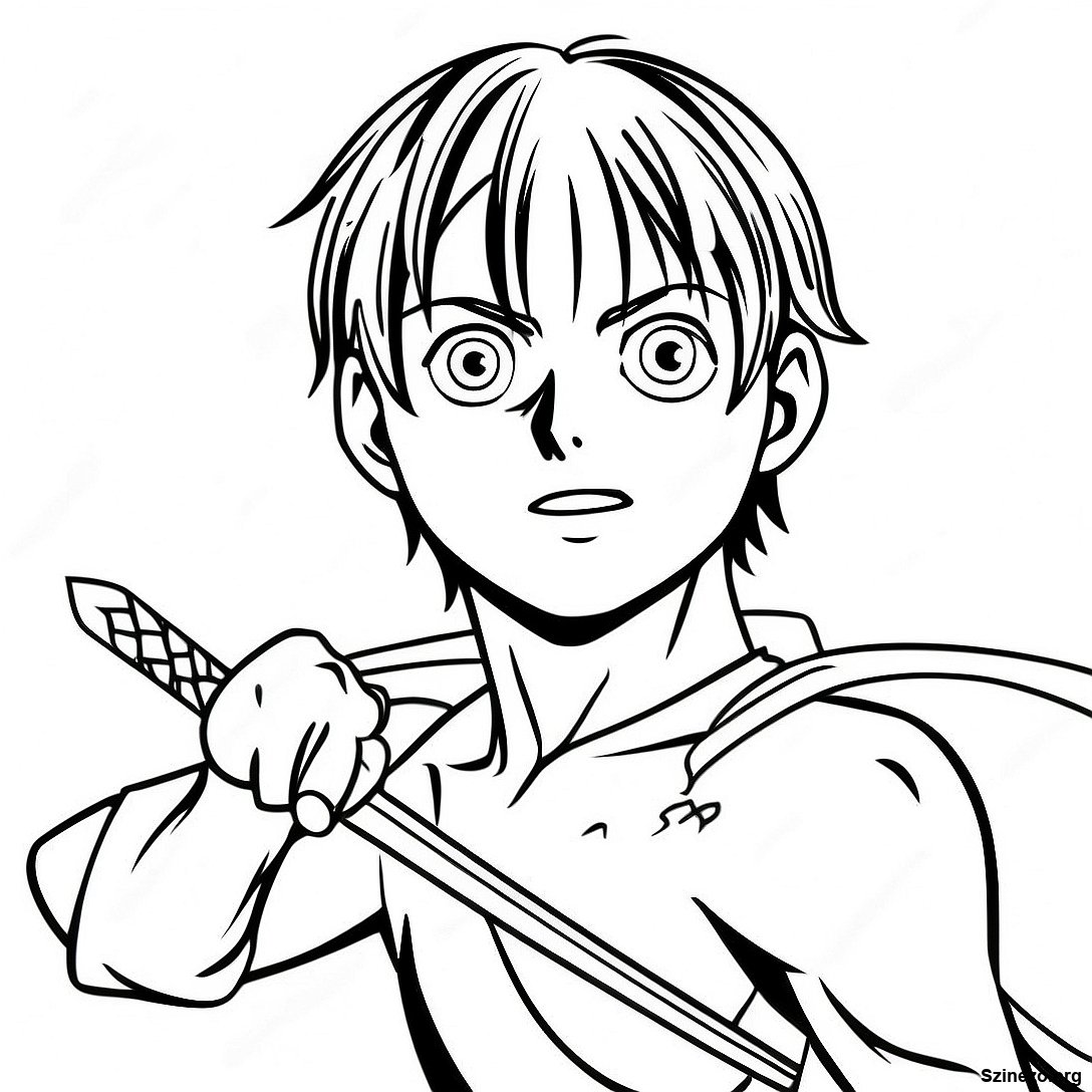Töltse le a nyomtatható PDF verzióját a(z) Eren Yeager Késsel Színezőlap oldalnak
