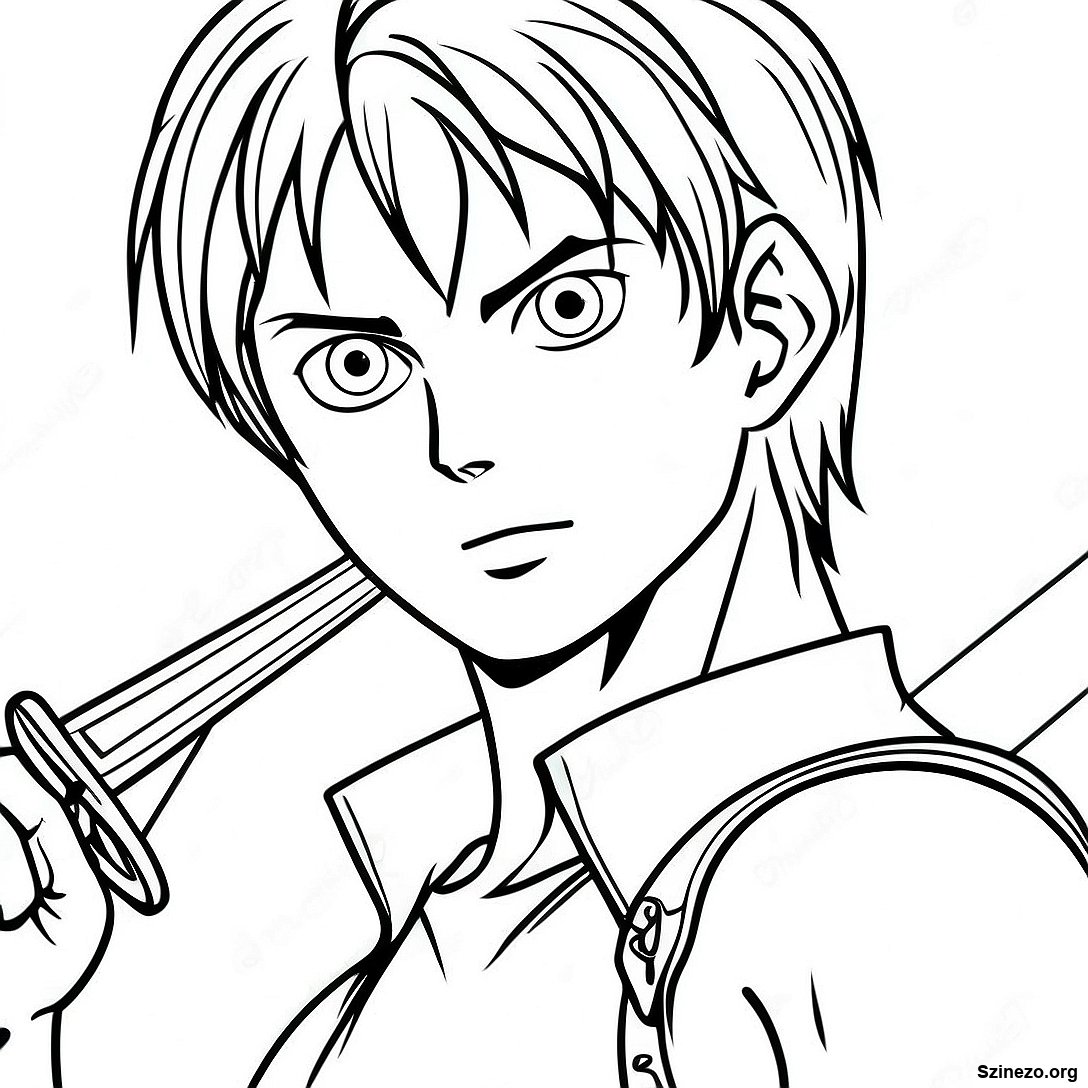 Töltse le a nyomtatható PDF verzióját a(z) Eren Yeager Késsel Színezőlap oldalnak