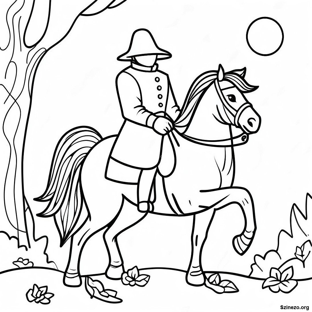 Töltse le a nyomtatható PDF verzióját a(z) Fej Nélküli Lovas Színezőlap oldalnak