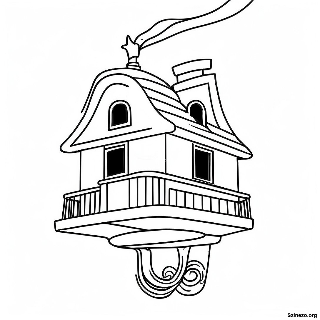 Töltse le a nyomtatható PDF verzióját a(z) Fel! Repülő Ház Színező oldalnak