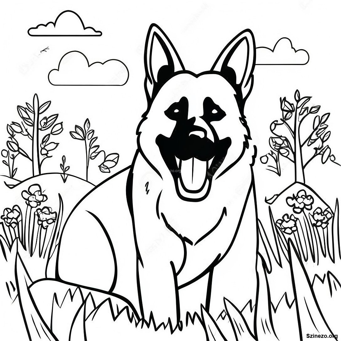 Fenséges Német Juhász Egy Mezőn Színezőlap