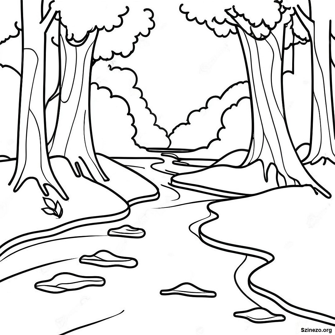 Töltse le a nyomtatható PDF verzióját a(z) Folyó Fák Között Színezőlap oldalnak