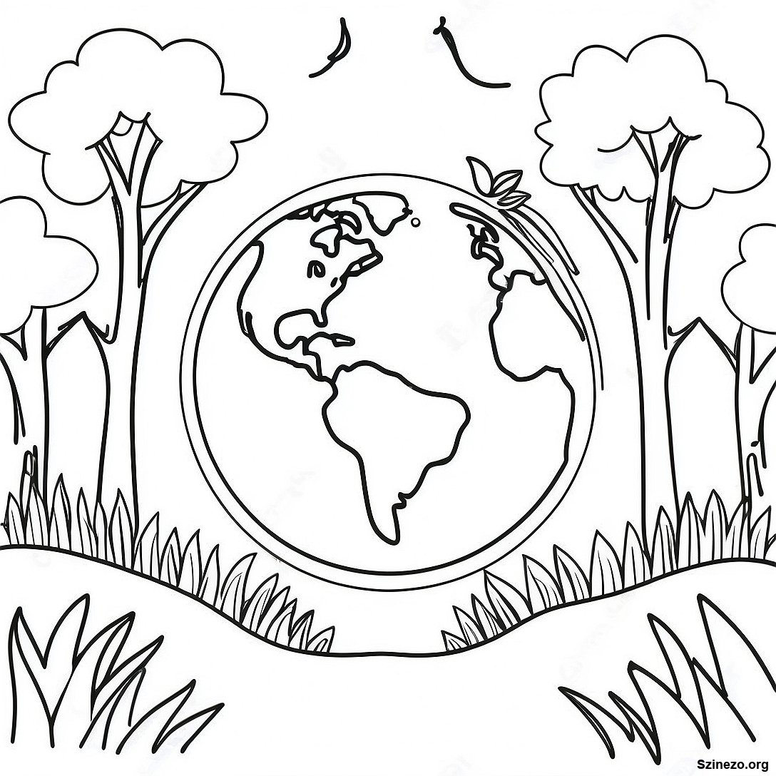 Töltse le a nyomtatható PDF verzióját a(z) Gyönyörű Föld Fákkal És Virágokkal Színező Oldal oldalnak