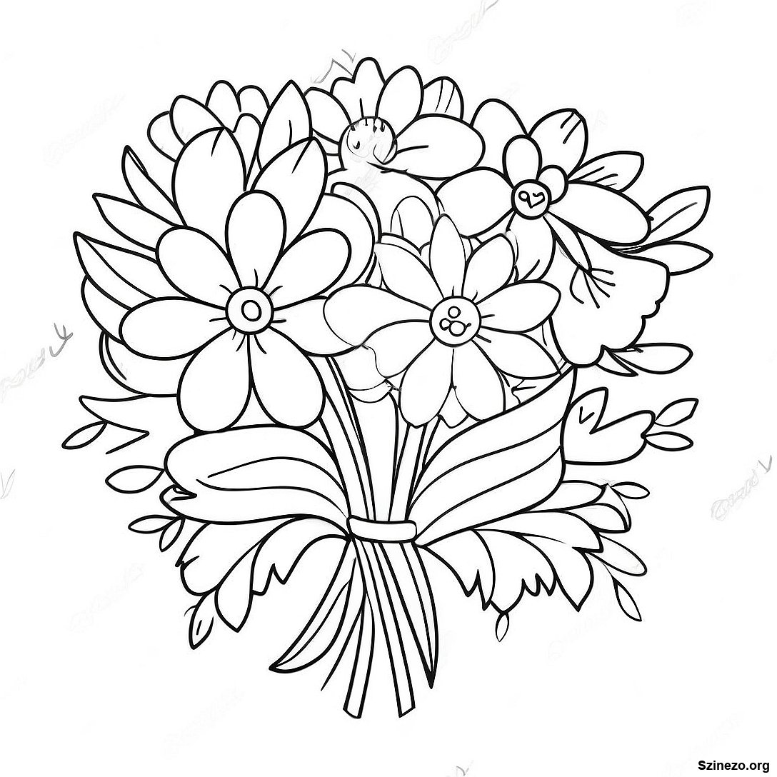 Gyönyörű Virágcsokor Anyák Napja Színezőlap