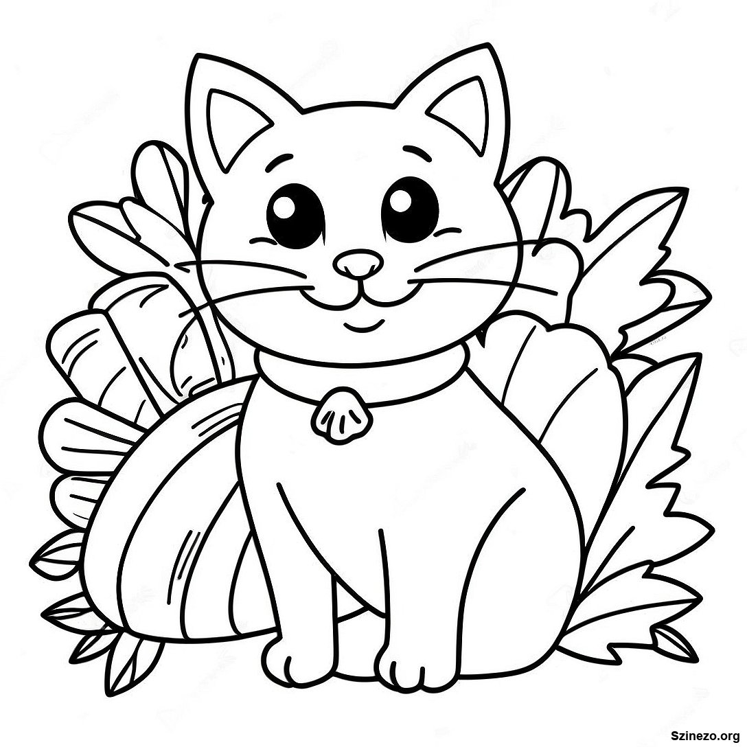 Töltse le a nyomtatható PDF verzióját a(z) Hálaadás Macska Színezőlap oldalnak