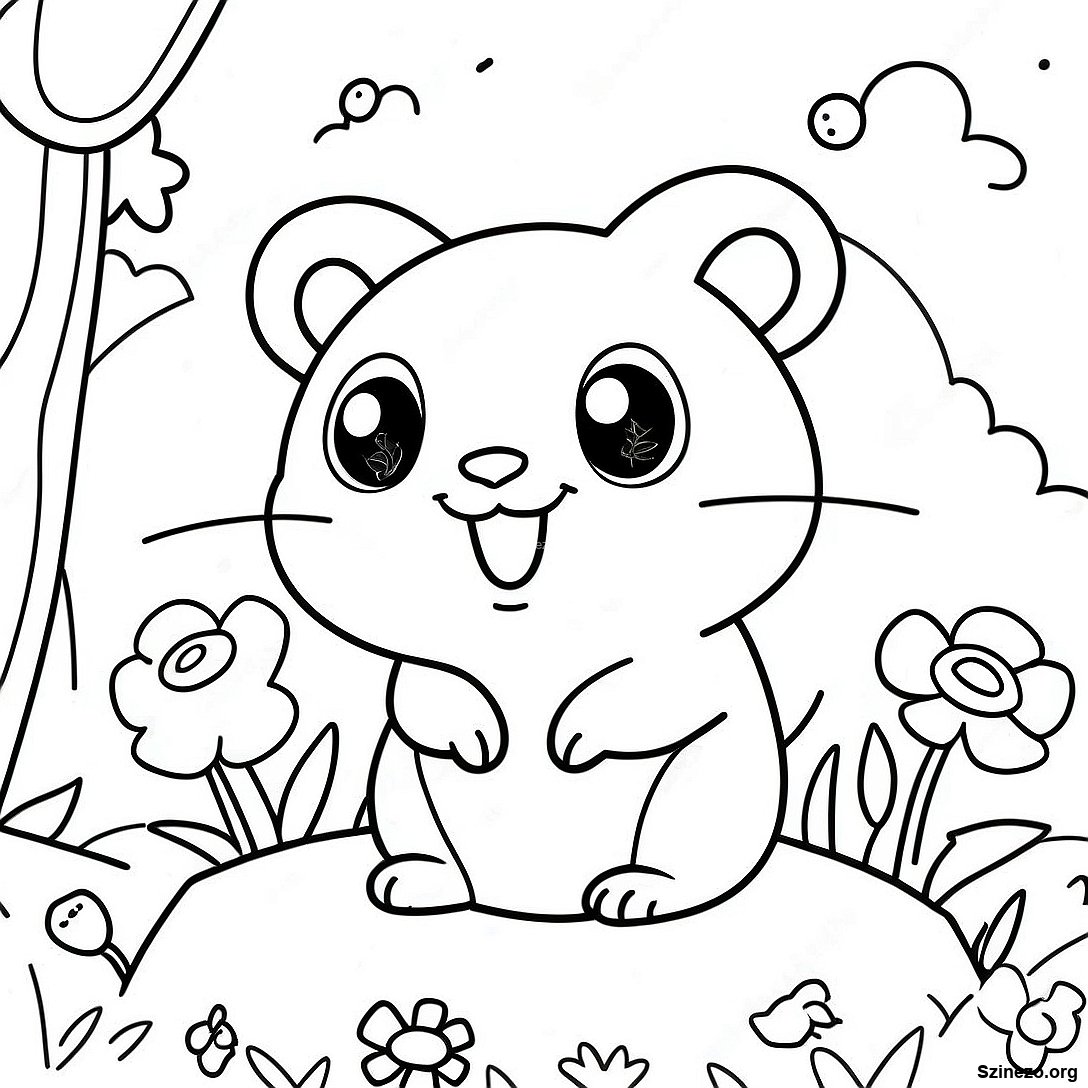 Töltse le a nyomtatható PDF verzióját a(z) Hamtaro Virágoskertben Színezőoldal oldalnak